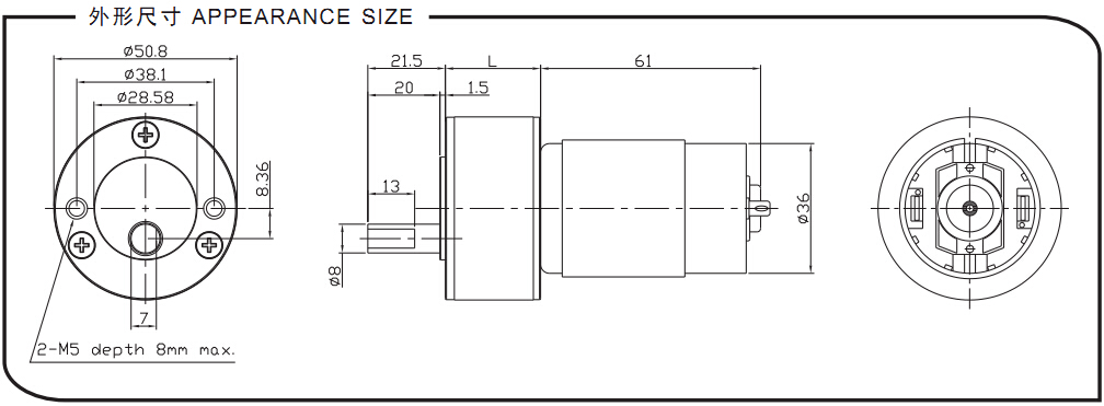 齒輪箱尺寸: ?50.8mmx Lmm
