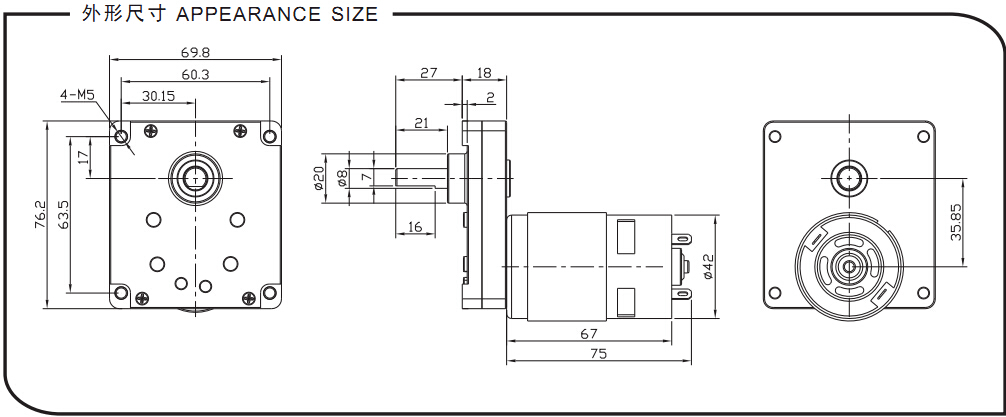 齒輪箱尺寸: 69.8mmx76.2mmxH18mm